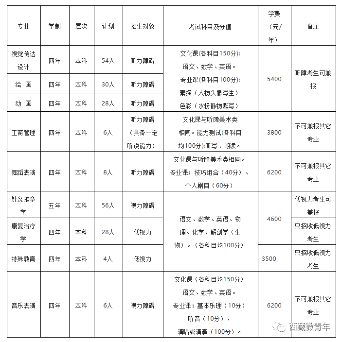 医学门类,本科,学制四年,授予理学学士学位(只招收低视力考生)。